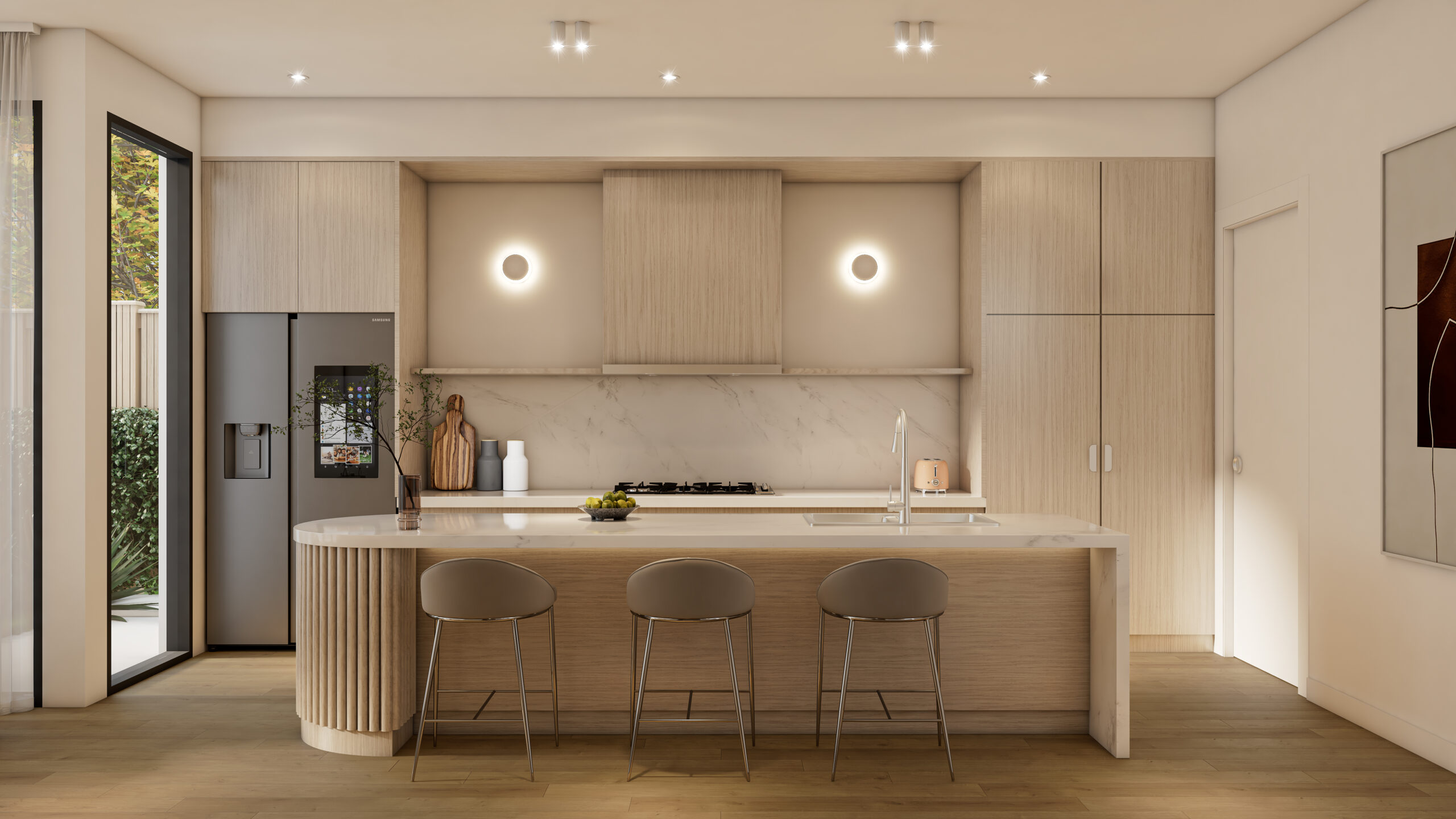 Within Solis, light dances through open spaces, weaving form and flow into a tapestry of ease. Engineered timber floors ground the rooms in natural poise, while premium stone surfaces and subtle lighting layers create an organic hush. Textures invite touch—soft, tactile, and serene—evoking the calm of dunes kissed by salt air. This is refined living, where every corner breathes understated luxury, a quiet embrace for the soul.